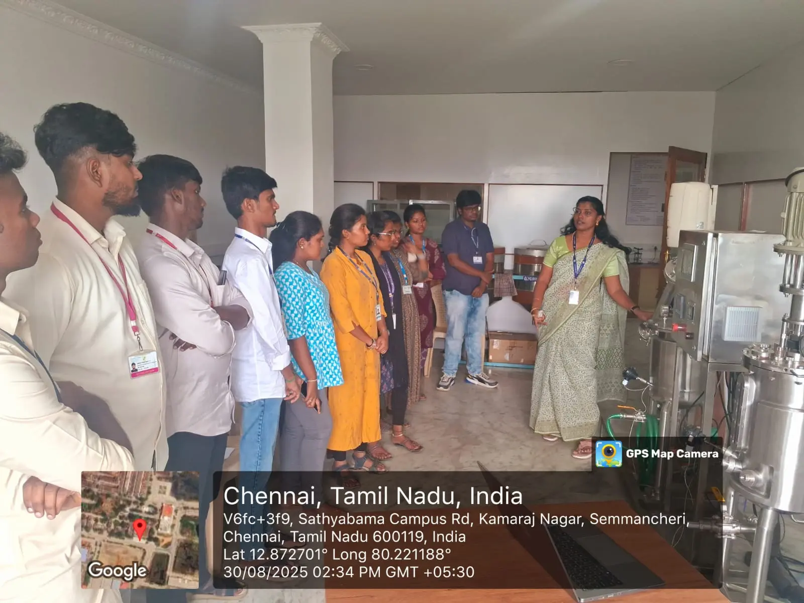 The Centre for Waste Management at Sathyabama Institute of Science and Technology (Deemed to be University) organized a “One-day Training cum Workshop on Biomass Fermentation and Distillation for Bioethanol Production” on 30th August 2025. This training provided participants with comprehensive knowledge of biomass as a renewable resource for bioenergy production, covering key sources such as recently living plant matter and biological waste from both commercial and residential sectors. The program emphasized biomass characterization through proximate analysis—including moisture content, volatile matter, ash, and fixed carbon—along with cellulose estimation and extraction of lignin, hemicellulose, and cellulose from lignocellulosic biomass. Participants also explored hydrolysis (acid, alkali, and enzymatic), fermentation, distillation, and bioethanol detection, complemented by a demonstration of a pilot-scale bioethanol plant. The training highlighted various energy recovery methods, including thermal, chemical, biochemical, and electrochemical conversions, and illustrated how these processes contribute to Sustainable Development Goals (SDGs) 1, 7, 8, and 13 by promoting clean energy, fostering inclusive and sustainable growth, and supporting climate action initiatives. Students from Sathyabama Institute of Science and Technology, Loyola College, Paavai Engineering College, Dhanalakshmi Srinivasan Engineering College, and Jeppiaar Engineering College participated and gained practical insights from the program.
