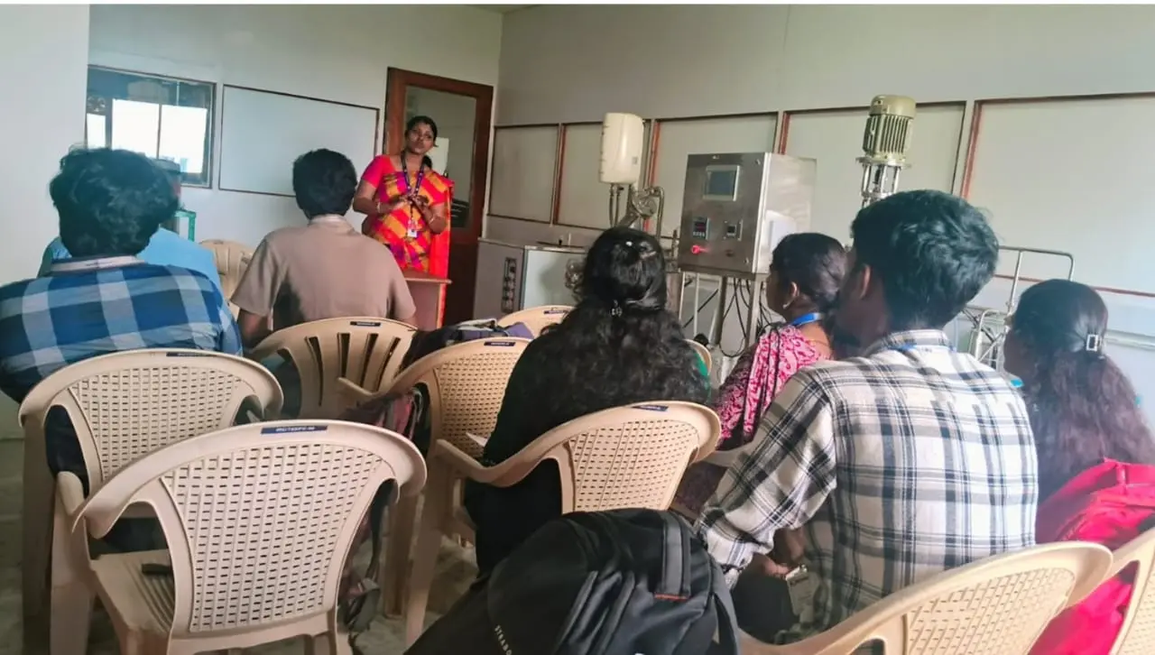 The training programme highlighted on proximate analysis (Moisture content, Volatile matter, ash and fixed carbon content), cellulose estimation, extraction of lignin, hemicellulose and cellulose from lignocellulosic biomass, hydrolysis (acid, alkali and enzyme), fermentation, distillation and bioethanol detection. Students from Sathyabama Institute of Science and Technology, Mahendra Engineering College, Dhanalakshmi Srinivasan Engineering College, Paavai College of Engineering, Karpaga Vinayaga College of Engineering and Technology Chengalpet, National Engineering College, Shreenivasa Engineering College, Kalaignarkarunanidhi Institute of Technology, Saveetha University and VSB Engineering College, Shreenivasa Engineering College participated and benefited from the programme. The training will provide participants with valuable insights into the advanced facilities available at the Centre for Waste Management, Sathyabama Institute of Science and Technology, particularly in biomass characterization and bioethanol production. It aims to inspire interest in internships and projects related to alternative fuels, encouraging participants to explore opportunities in this growing field.