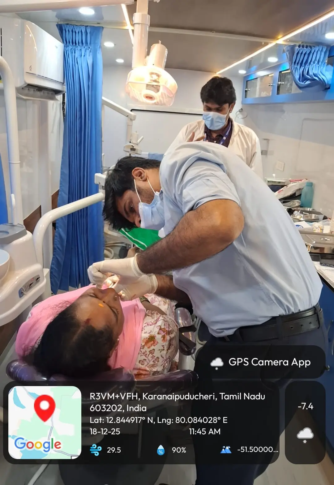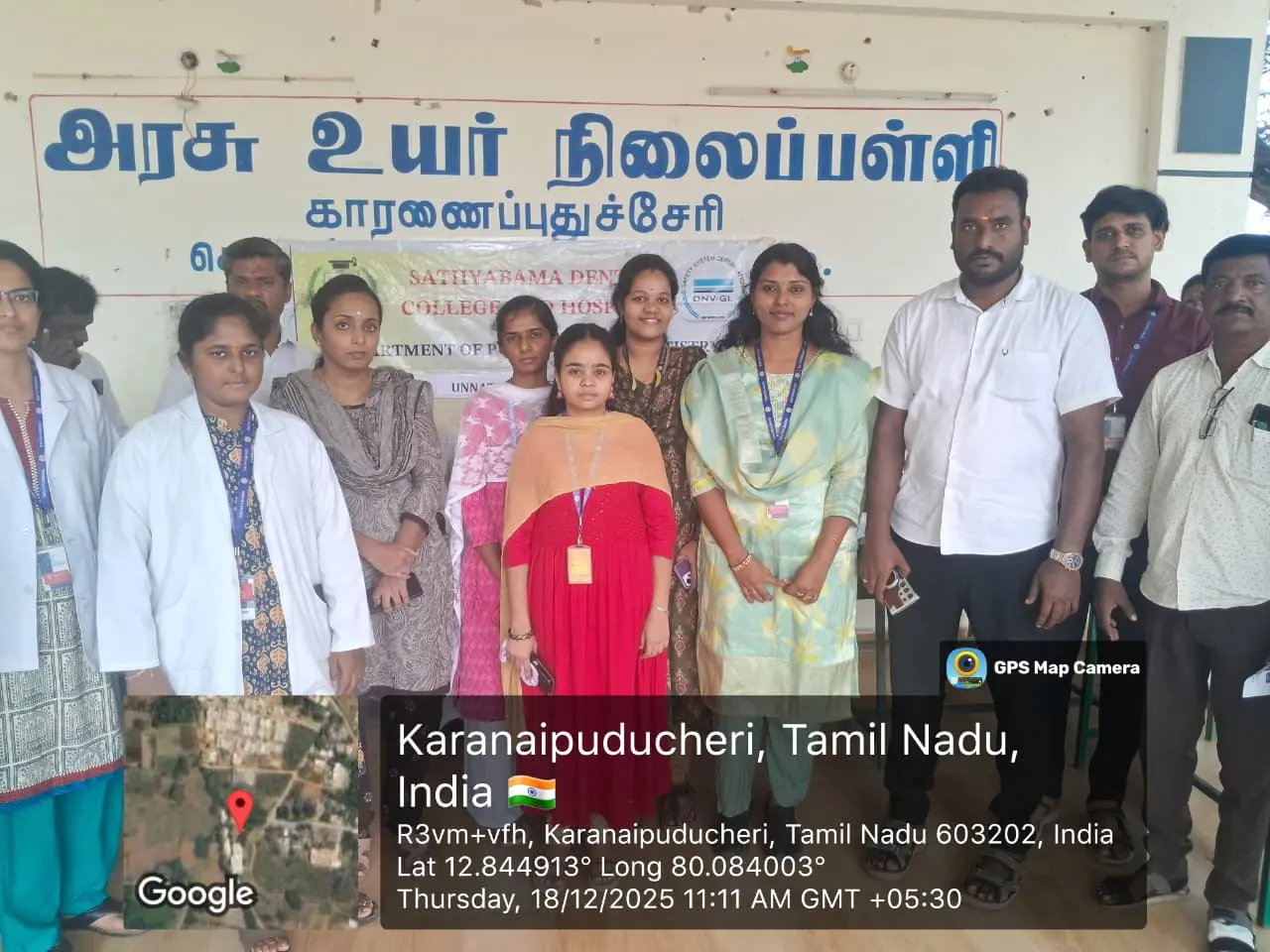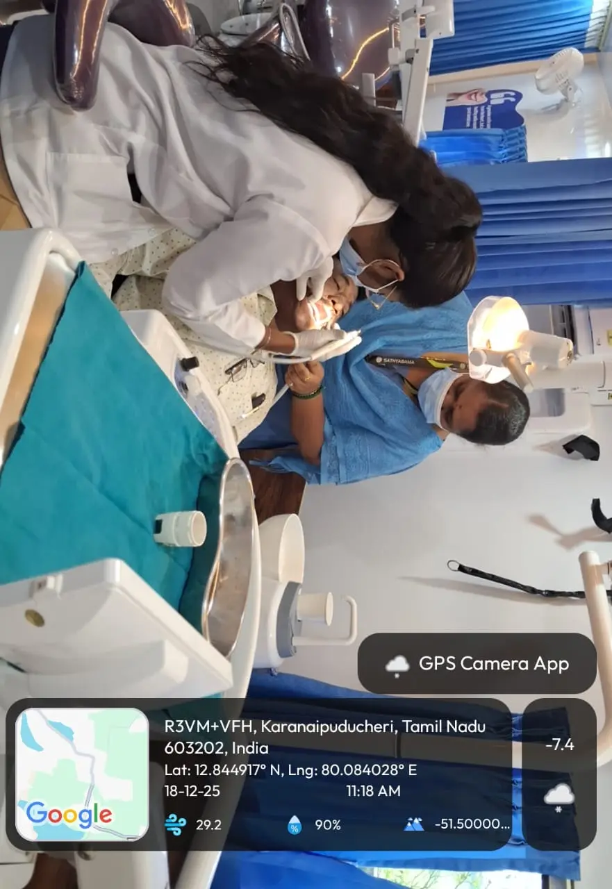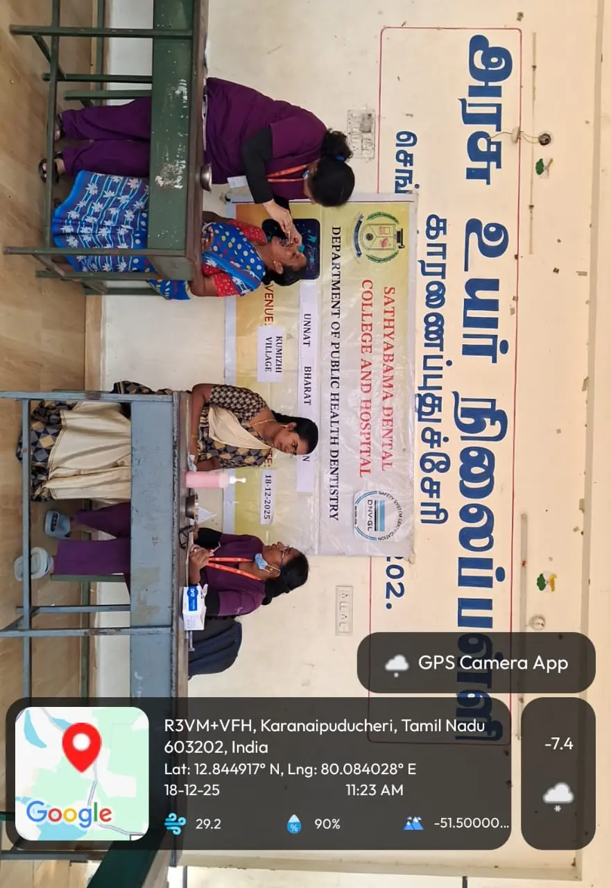 A Free Dental Screening and Treatment Camp was conducted on 18 December 2025 at the Government Higher Secondary School, Karanaipudhucheri Village. The programme was organized by the Centre for Waste Management, Indian System of Medicine, and Sathyabama Dental College and Hospital as part of the Unnat Bharat Abhiyan initiative. The camp aimed to improve oral health awareness and provide accessible dental care to the rural community. Village residents benefited from comprehensive dental screening. On-site treatments were provided using a mobile dental van. The medical team delivered essential dental services, including scaling, fillings, and extractions. The initiative addressed common dental ailments among school students and local residents. It facilitated early diagnosis and immediate treatment of oral health issues. The camp emphasized preventive oral healthcare practices. Overall, the programme successfully supported SDG 3: Good Health and Well-being.