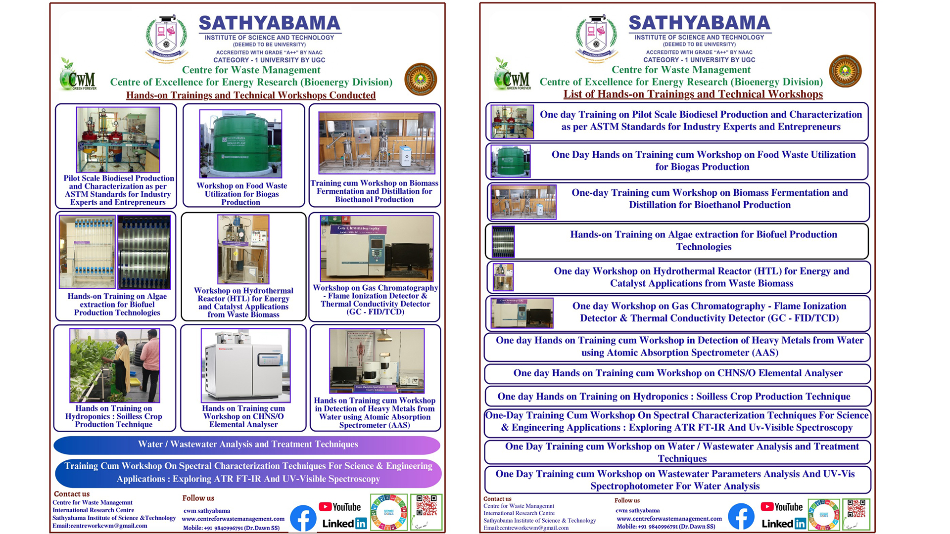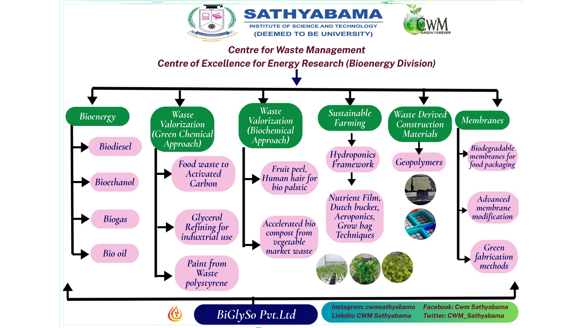 Sathyabama Institute of Science and Technology (Deemed to be University) is a pioneer in engineering education established with the aim of providing quality higher education in the areas of engineering, science and technology on par with international standards. It persistently seeks and adopts innovative methods to improve the quality of higher education on a consistent basis. The campus has a cosmopolitan atmosphere with students from all corners of the globe. Experienced and learned teachers are strongly encouraged to nurture the students. Having acquired excellence in the academic part of education with all sophisticated facilities available; the University has established its footprints in the field of Research. To encourage and motivate researchers across the globe, several research centres have been initiated in the university and are progressively working towards innovation in the field of Science and technology. Environmental pollution and Aesthetic degradation is increasing in such a drastic pace which has lead to serious focus on managing the waste generated. As a part of expanding its research wing Sathyabama Institute of Science and Technology (Deemed to be University) with the joint initiative of the National Solid Waste Association of India (NSWAI) has established the Centre for Waste Management. The Centre since its inception in 2011 has been involved in research leading to innovative products, developing patent liable novel ideas in Waste Management, publishing the experimental outcomes in indexed/peer reviewed journals, training graduate students, offering consultancy services and involves in several outreach activities in transferring the research findings for societal benefit.