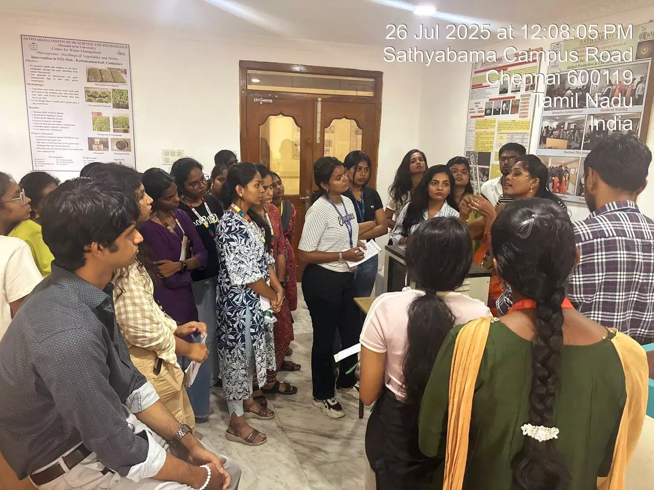 The Centre for Waste Management at Sathyabama Institute of Science and Technology (Deemed to be University) organized a “One-day Training cum Workshop on Biomass Fermentation and Distillation for Bioethanol Production” on 22nd November 2025. This training provided participants with comprehensive knowledge of biomass as a renewable resource for bioenergy production, covering key sources such as recently living plant matter and biological waste from both commercial and residential sectors. The program emphasized biomass characterization through proximate analysis—including moisture content, volatile matter, ash, and fixed carbon—along with cellulose estimation and extraction of lignin, hemicellulose, and cellulose from lignocellulosic biomass. Participants also explored hydrolysis (acid, alkali, and enzymatic), fermentation, distillation, and bioethanol detection, complemented by a demonstration of a pilot-scale bioethanol plant. The training highlighted various energy recovery methods, including thermal, chemical, biochemical, and electrochemical conversions, and illustrated how these processes contribute to Sustainable Development Goals (SDGs) 1, 7, 8, and 13 by promoting clean energy, fostering inclusive and sustainable growth, and supporting climate action initiatives. Students from Sathyabama Institute of Science and Technology and Sri Balaji Vidyapeeth, Pondicherry participated and gained practical insights from the program.