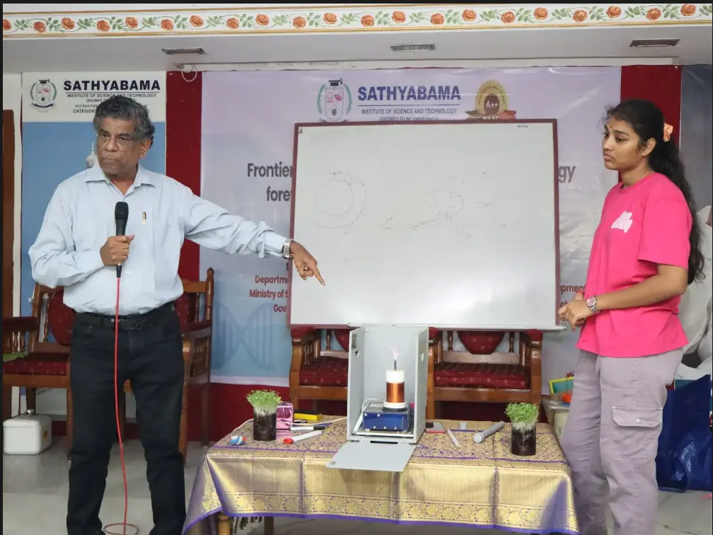 The 34th Children’s Science Congress – 2025, organized jointly by the Tamil Nadu Science Forum (South Chennai District) and the Centre for Waste Management, Sathyabama Institute of Science and Technology, was successfully conducted on 21 November 2025 at the university campus. The program revolved around the focal theme “Sustainable Safe Water Management.” The event witnessed enthusiastic participation from schools across the district, with 82 student science projects evaluated,164 student participants and 72 teachers and parents actively engaging in discussions, presentations, and interactions. The event began with an inaugural addressed by Dr.T.Sasi Praba, Director innovations Sathyabama institute of Science and Technology, Sathyabama University,