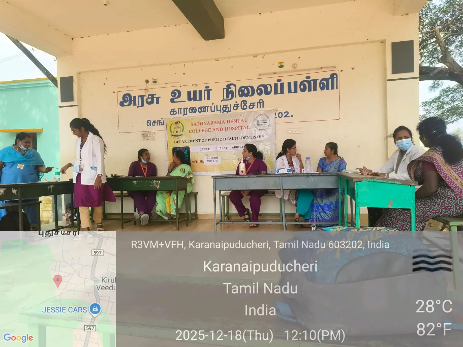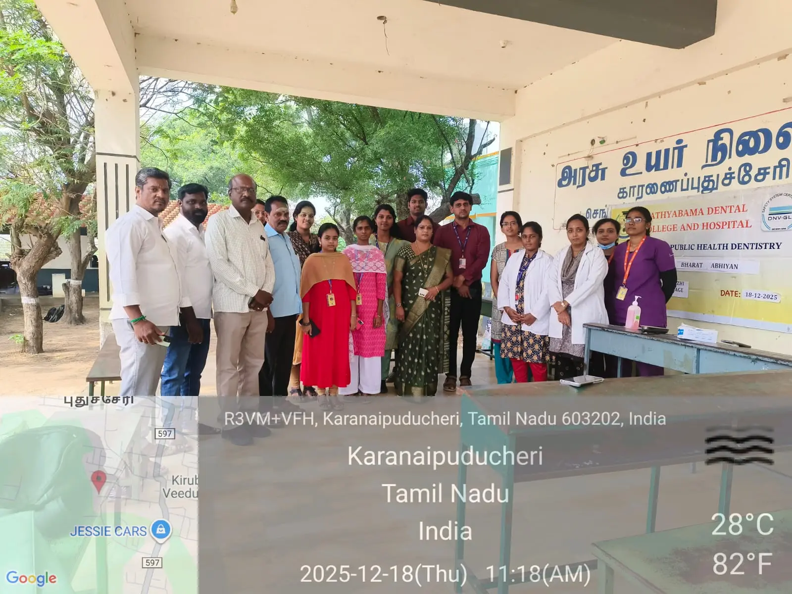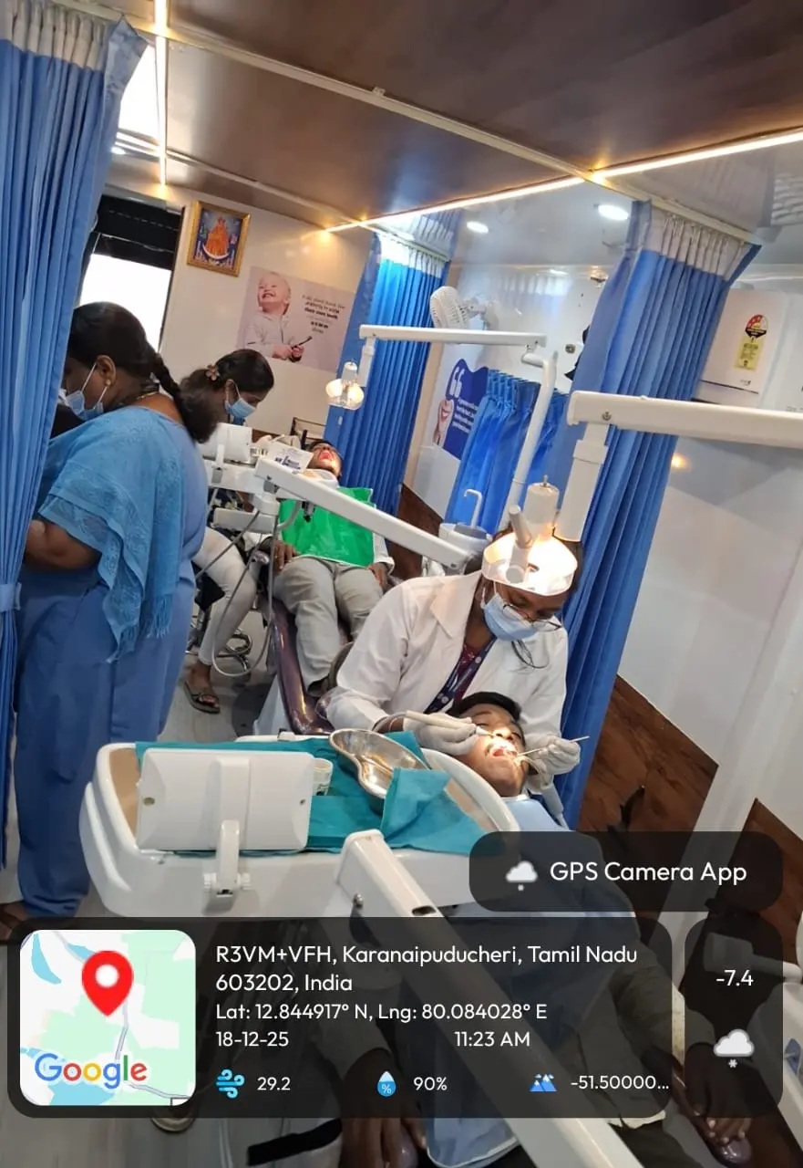 A Free Dental Screening and Treatment Camp was conducted on 18 December 2025 at the Government Higher Secondary School, Karanaipudhucheri Village. The programme was organized by the Centre for Waste Management, Indian System of Medicine, and Sathyabama Dental College and Hospital as part of the Unnat Bharat Abhiyan initiative. The camp aimed to improve oral health awareness and provide accessible dental care to the rural community. Village residents benefited from comprehensive dental screening. On-site treatments were provided using a mobile dental van. The medical team delivered essential dental services, including scaling, fillings, and extractions. The initiative addressed common dental ailments among school students and local residents. It facilitated early diagnosis and immediate treatment of oral health issues. The camp emphasized preventive oral healthcare practices. Overall, the programme successfully supported SDG 3: Good Health and Well-being.