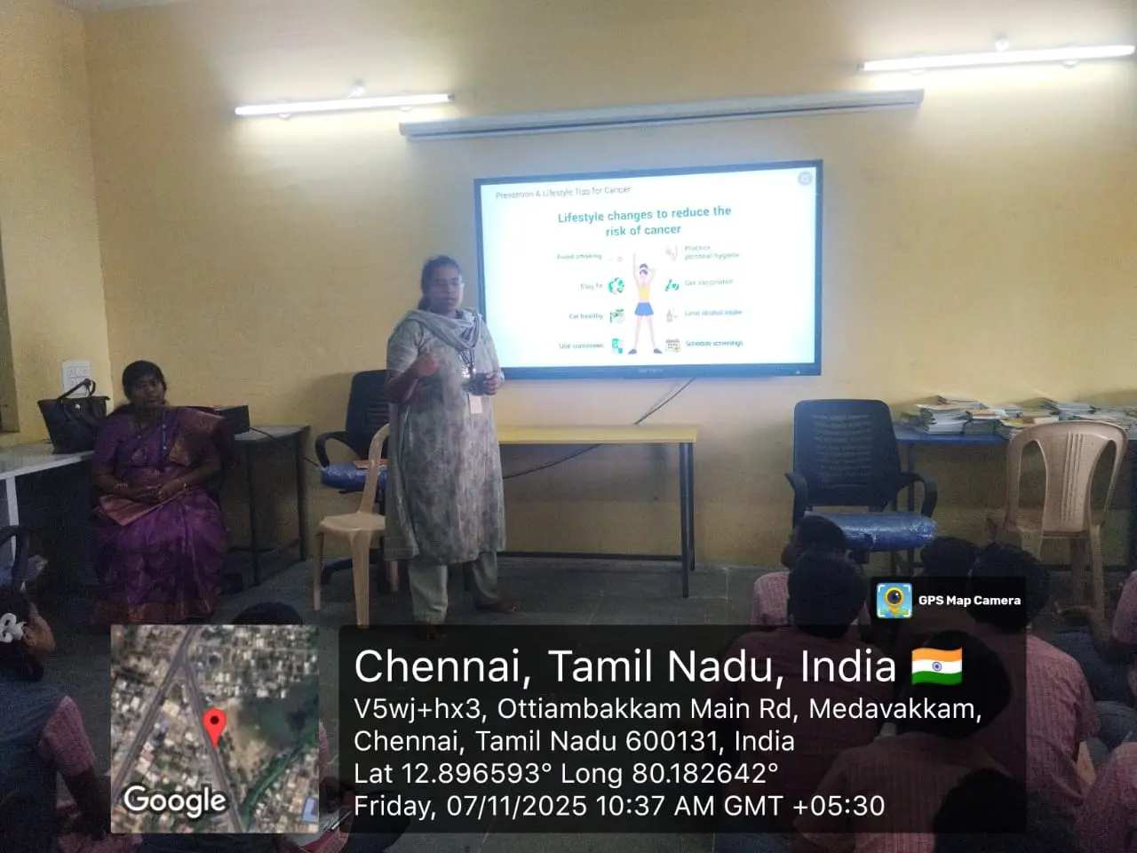 Centre for Waste Management, Centre of Excellence for Energy Research (Bioenergy Division) Sathyabama Institute of Science and Technology conducted an Awareness programme on EMPOWER TO PREVENT: RAISING CANCER AWARENESS on 07 NOVEMBER 2025 at GOVERNMENT HIGH SCHOOL, SITHALAPAKKAM. Students from Government High School, Sithalapakkam were introduced to the Cancer and the need for awareness about cancer. The students also given awareness about the food to be taken and avoided to prevent cancer and also the lifestyle changes. 40 students were enthusiastically participated in the programme and get awareness